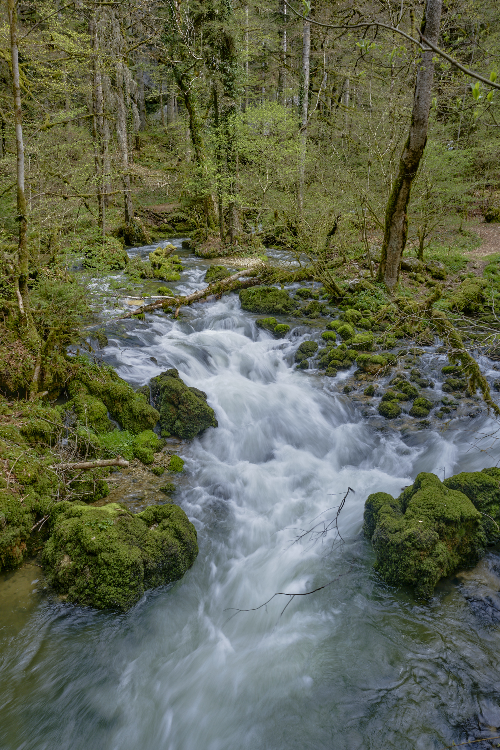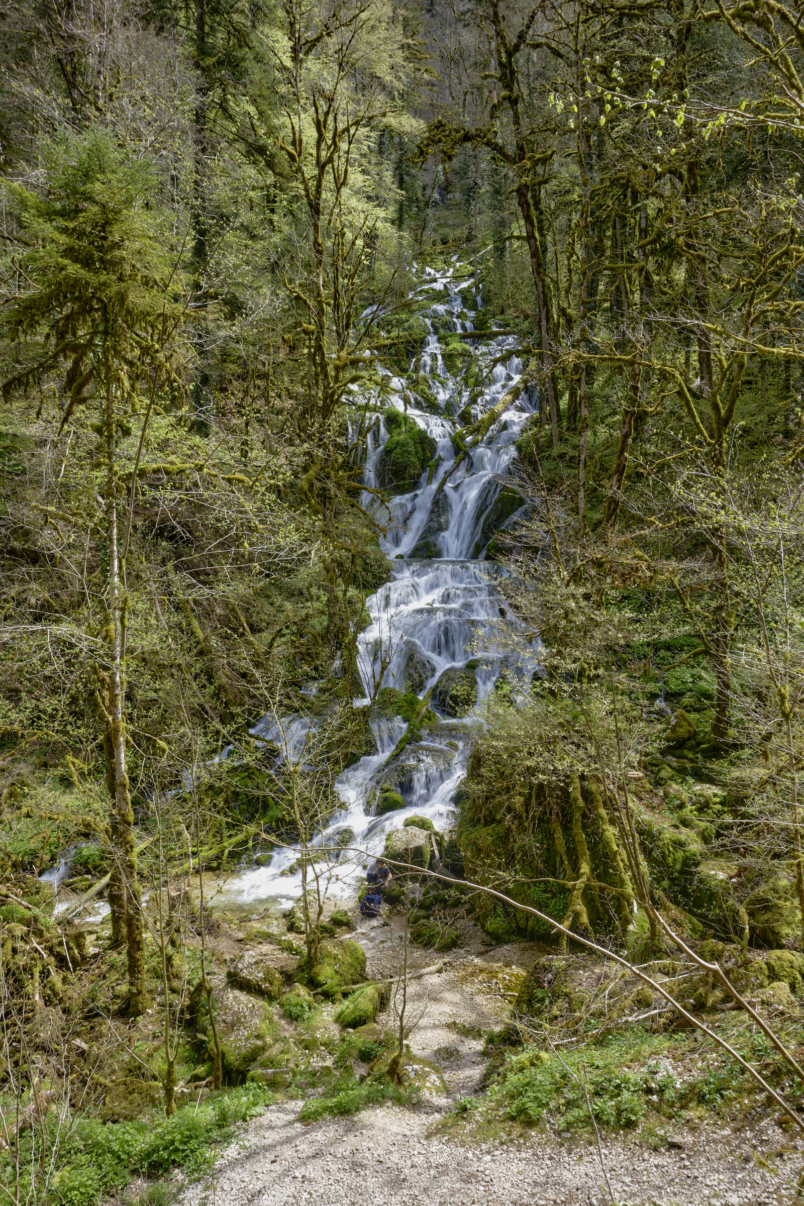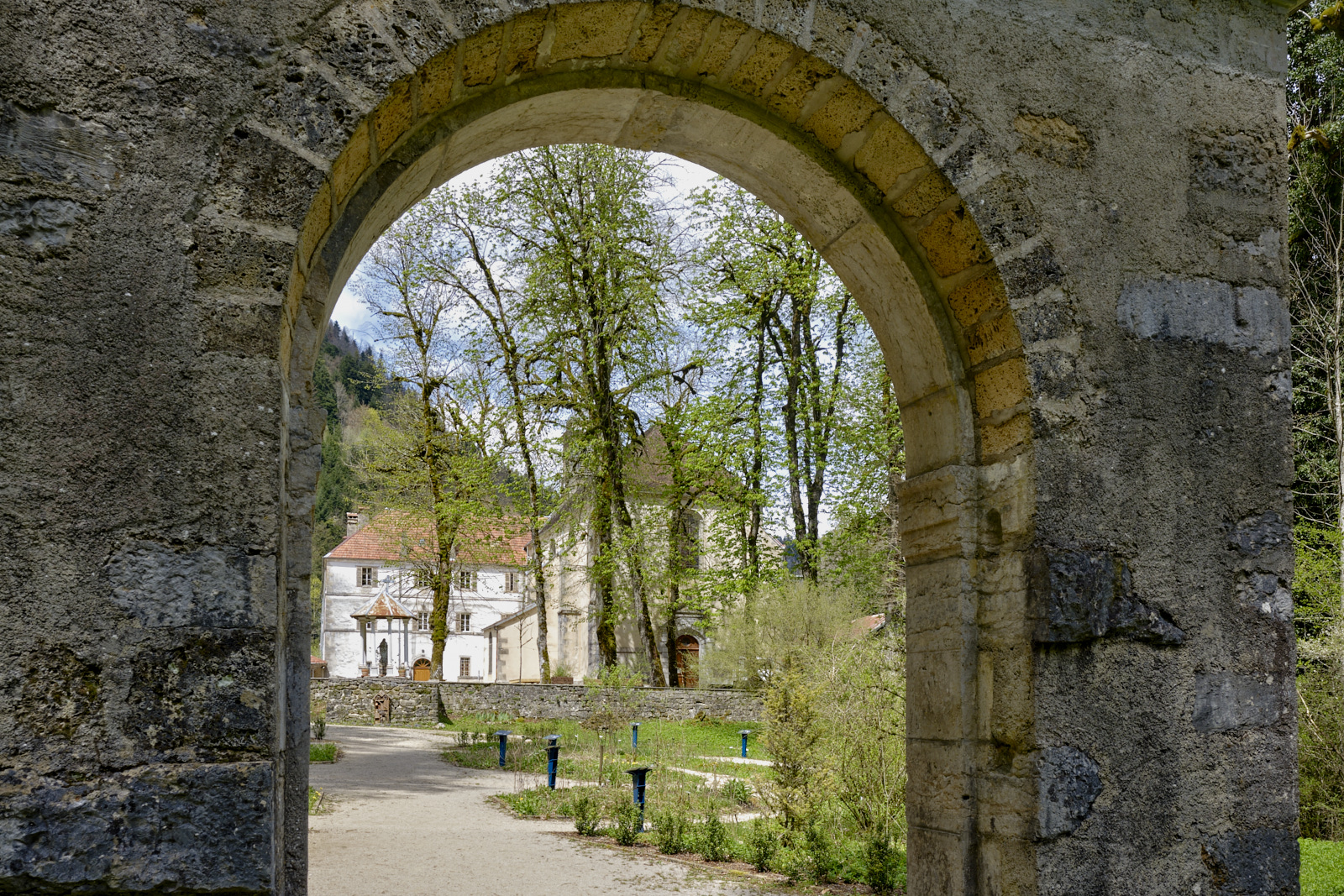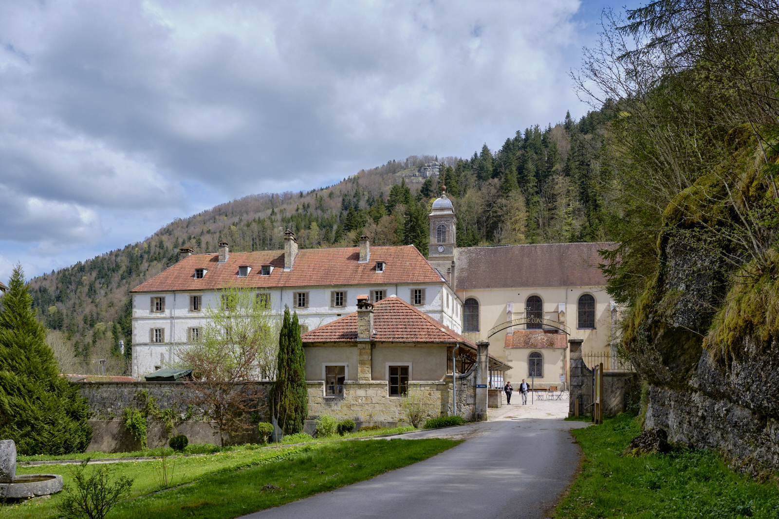 Surplombée par 350 mètres de falaises affleurantes. Cascades et ruisseaux du Dessoubres. Au fond de la Reculée la cascade du Lançot. Au début, un ancien monastère.