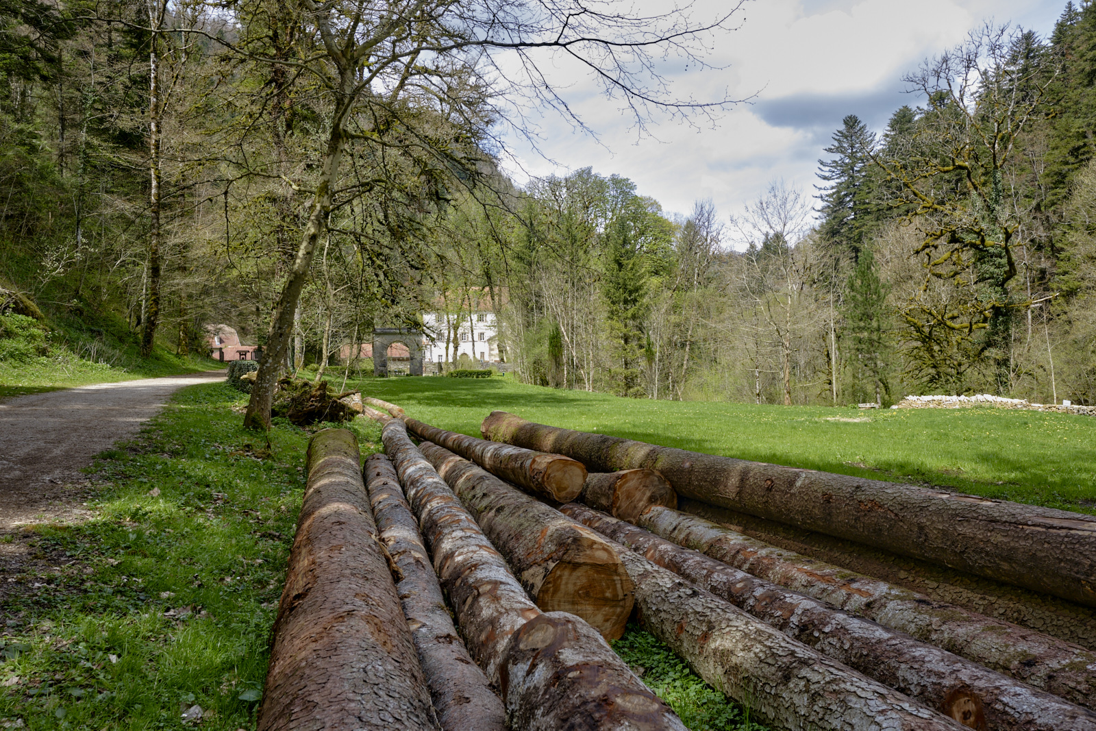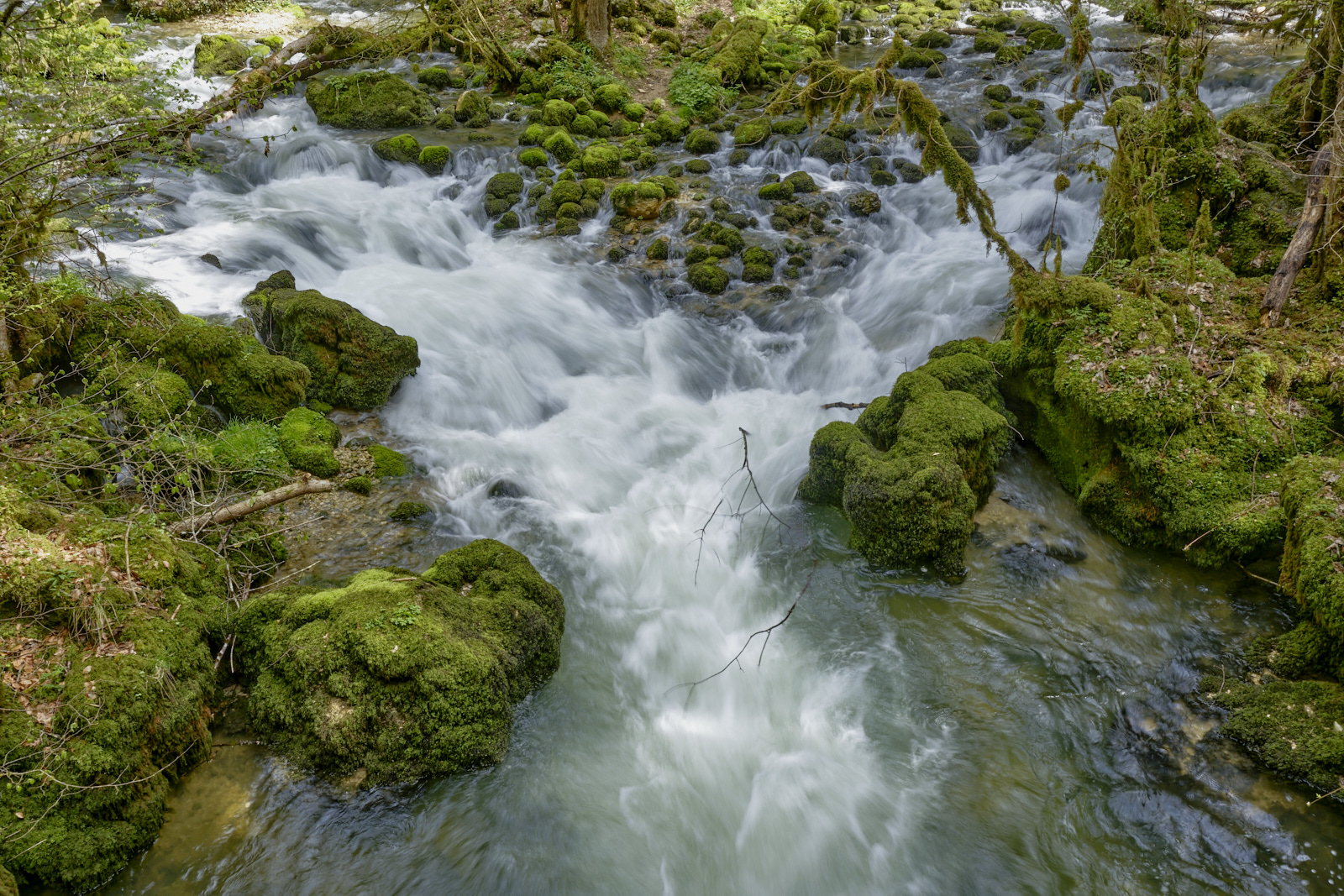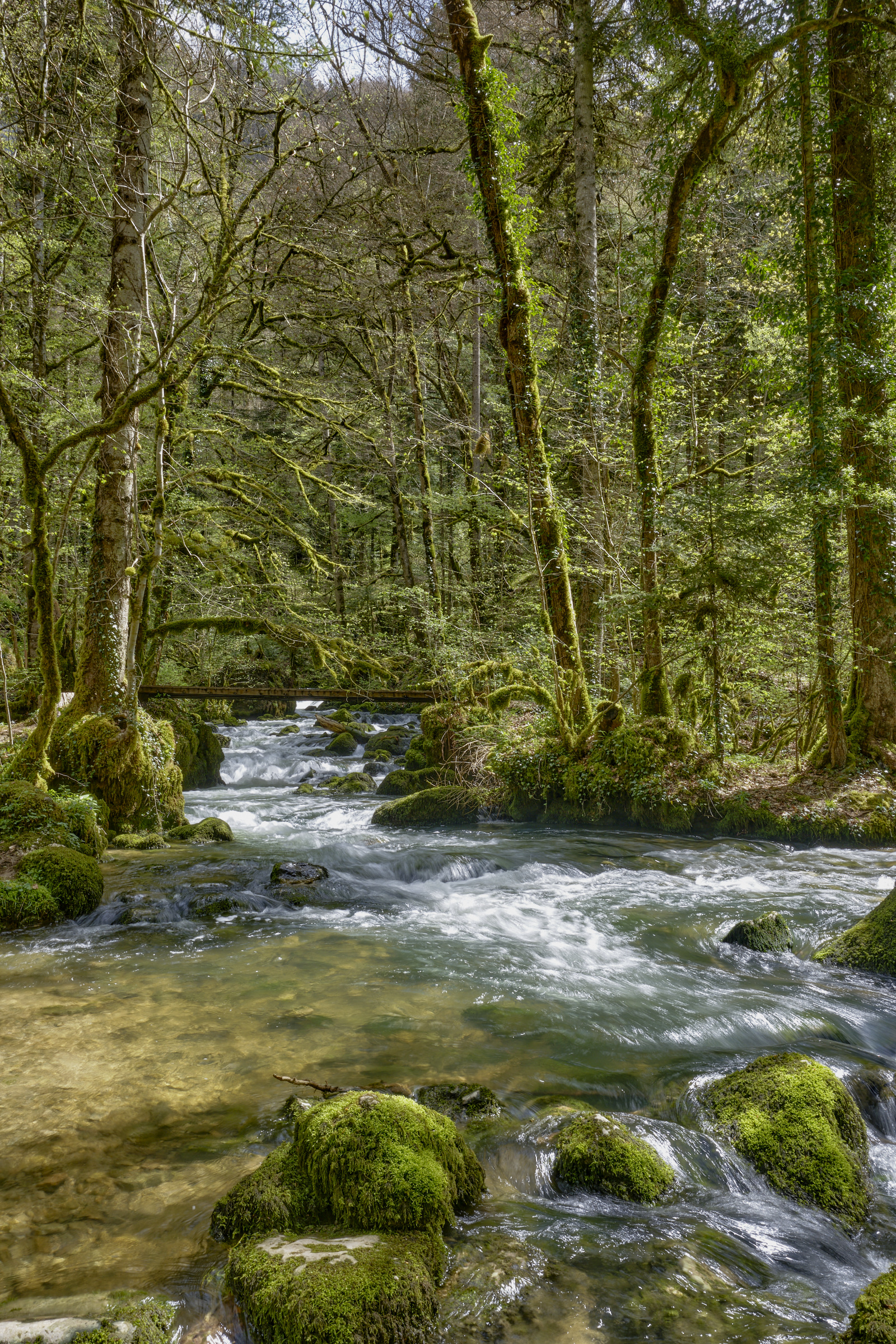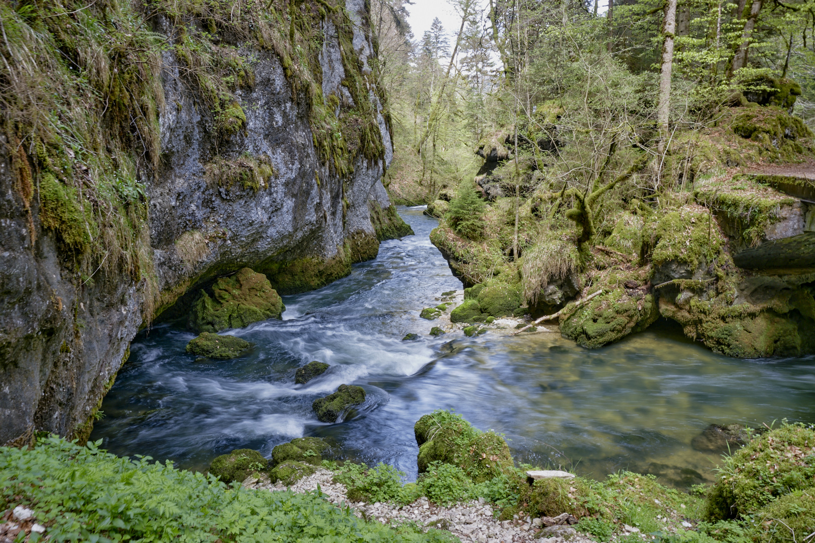 Surplombée par 350 mètres de falaises affleurantes. Cascades et ruisseaux du Dessoubres. Au fond de la Reculée la cascade du Lançot. Au début, un ancien monastère.