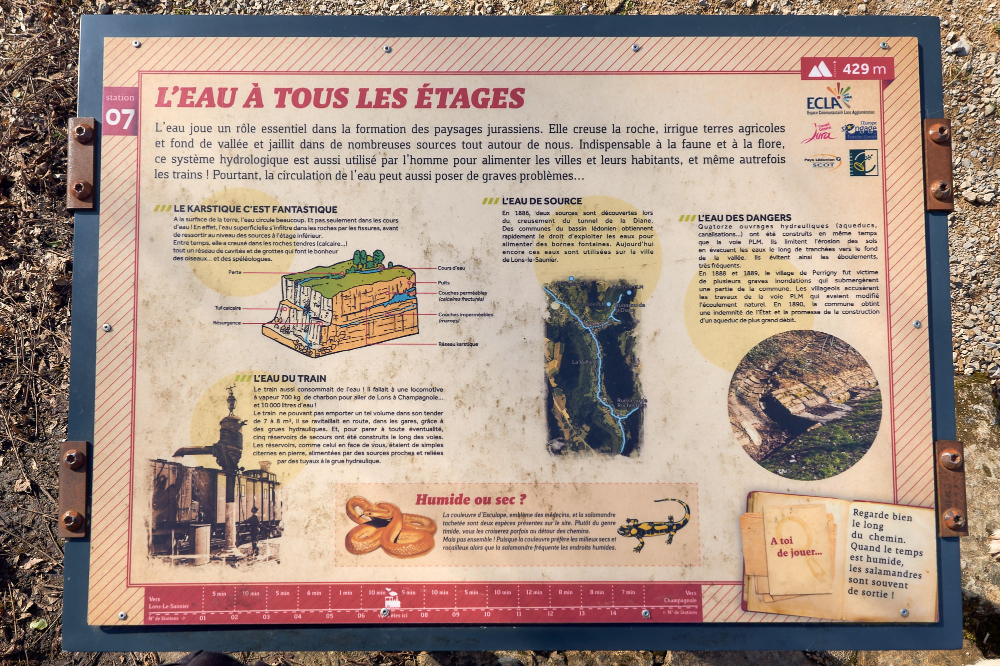 Ligne de Lons-le-Saunier à Champagnole à voie unique construite à partir de 1883 et inaugurée en 1891.