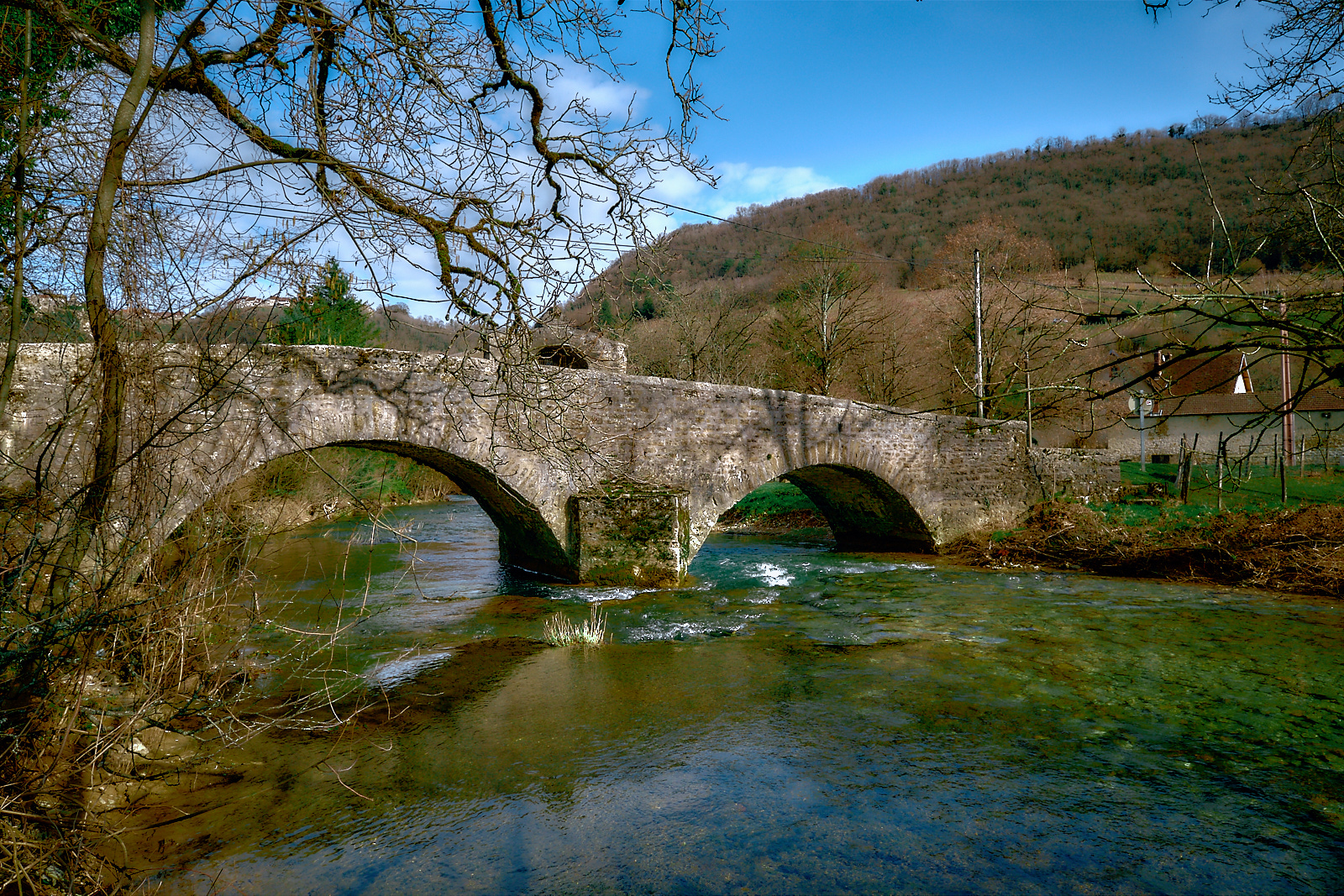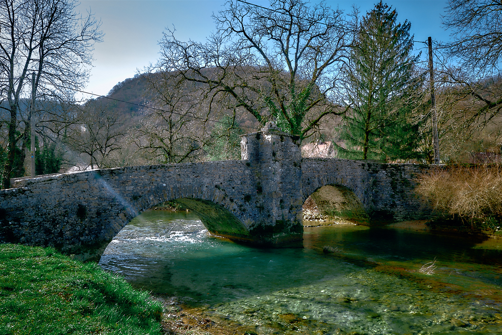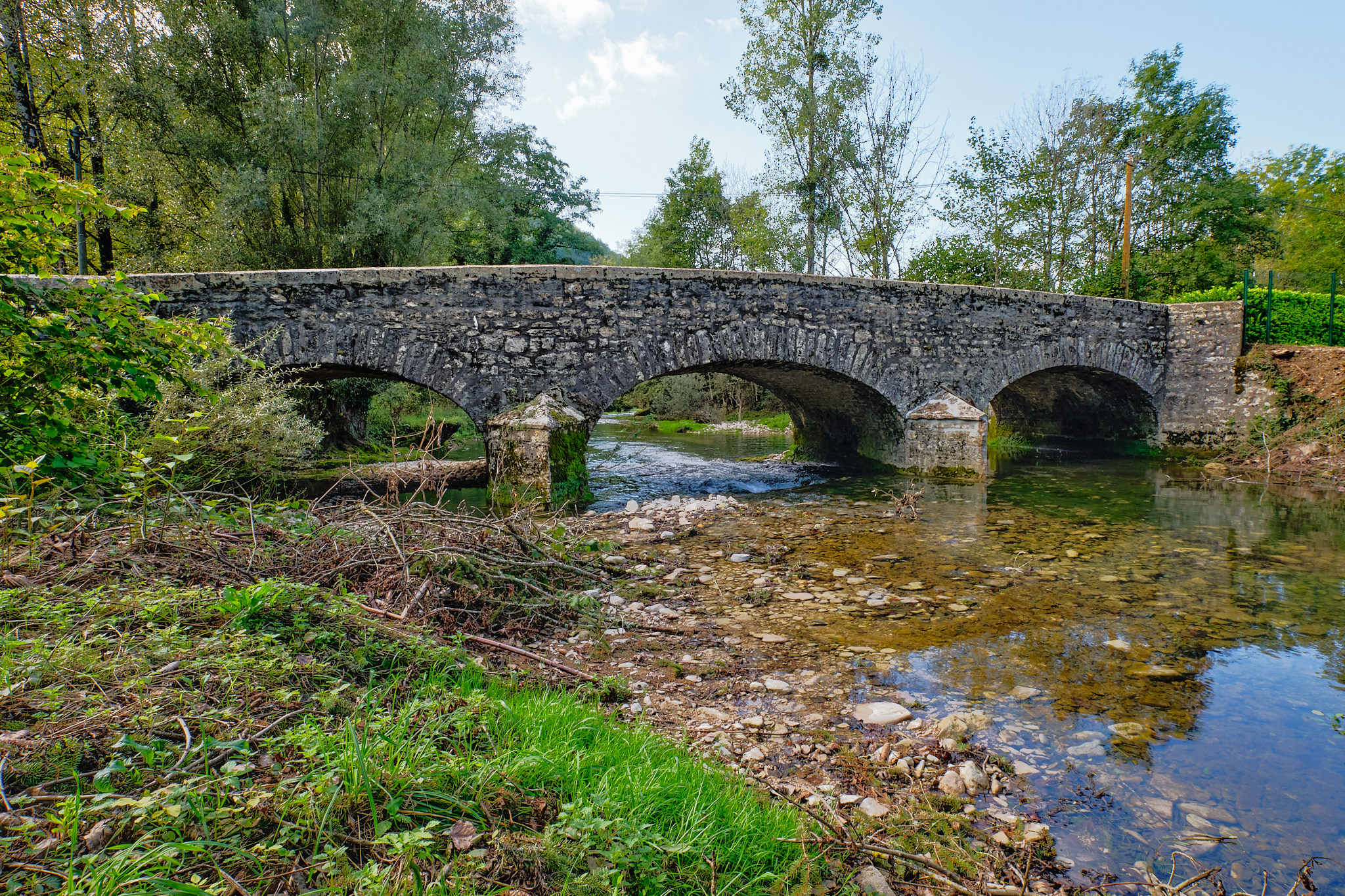 Datant du XVIIIe siècle il possède deux arches en plein cintre dont le tablier est incliné vers la rive droite. Il mesure 19 m de long et 3,7 m de large. La pile centrale est surmontée, côté aval, d'un petit oratoire dédié à la vierge avec un calvaire.