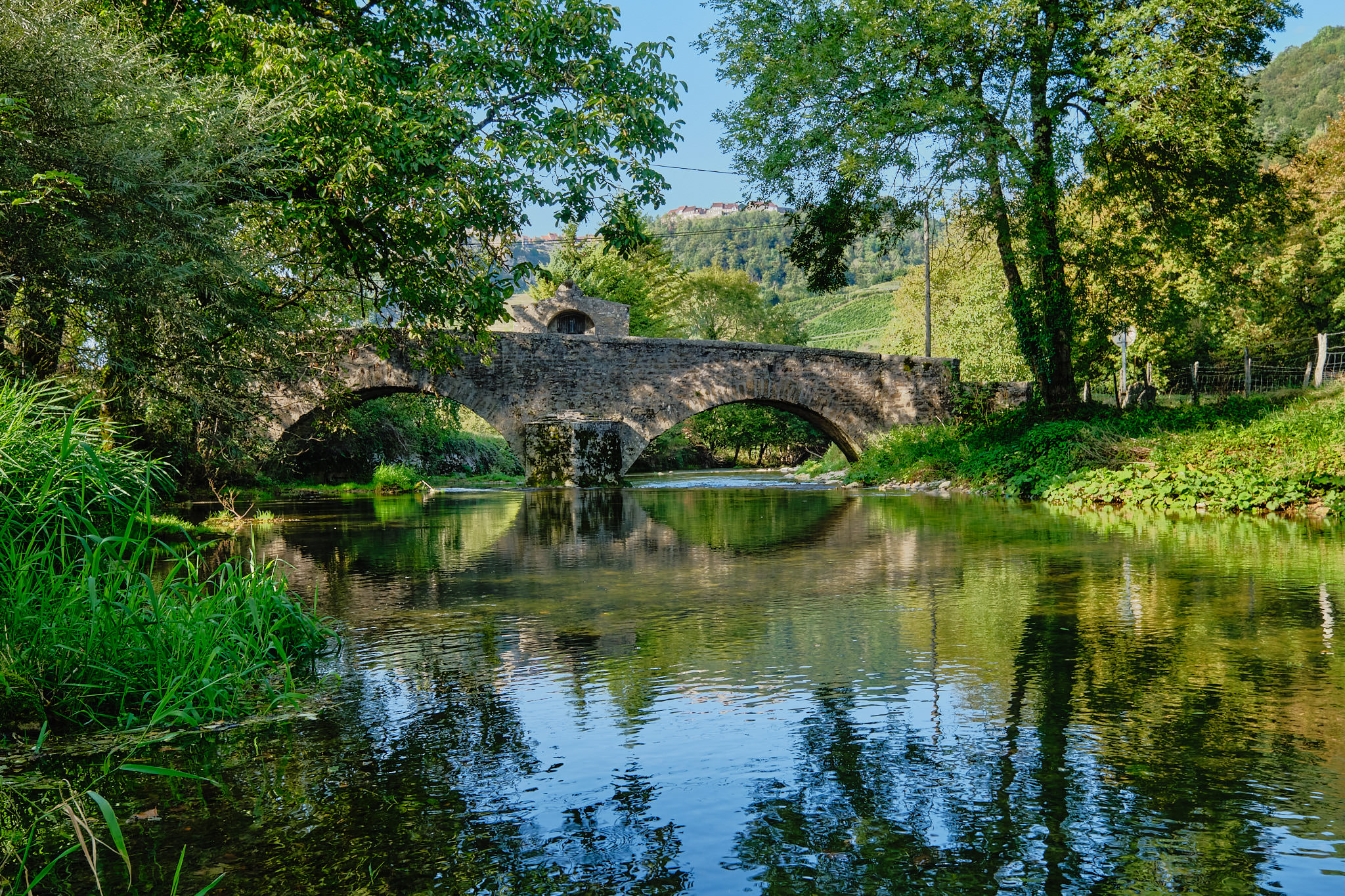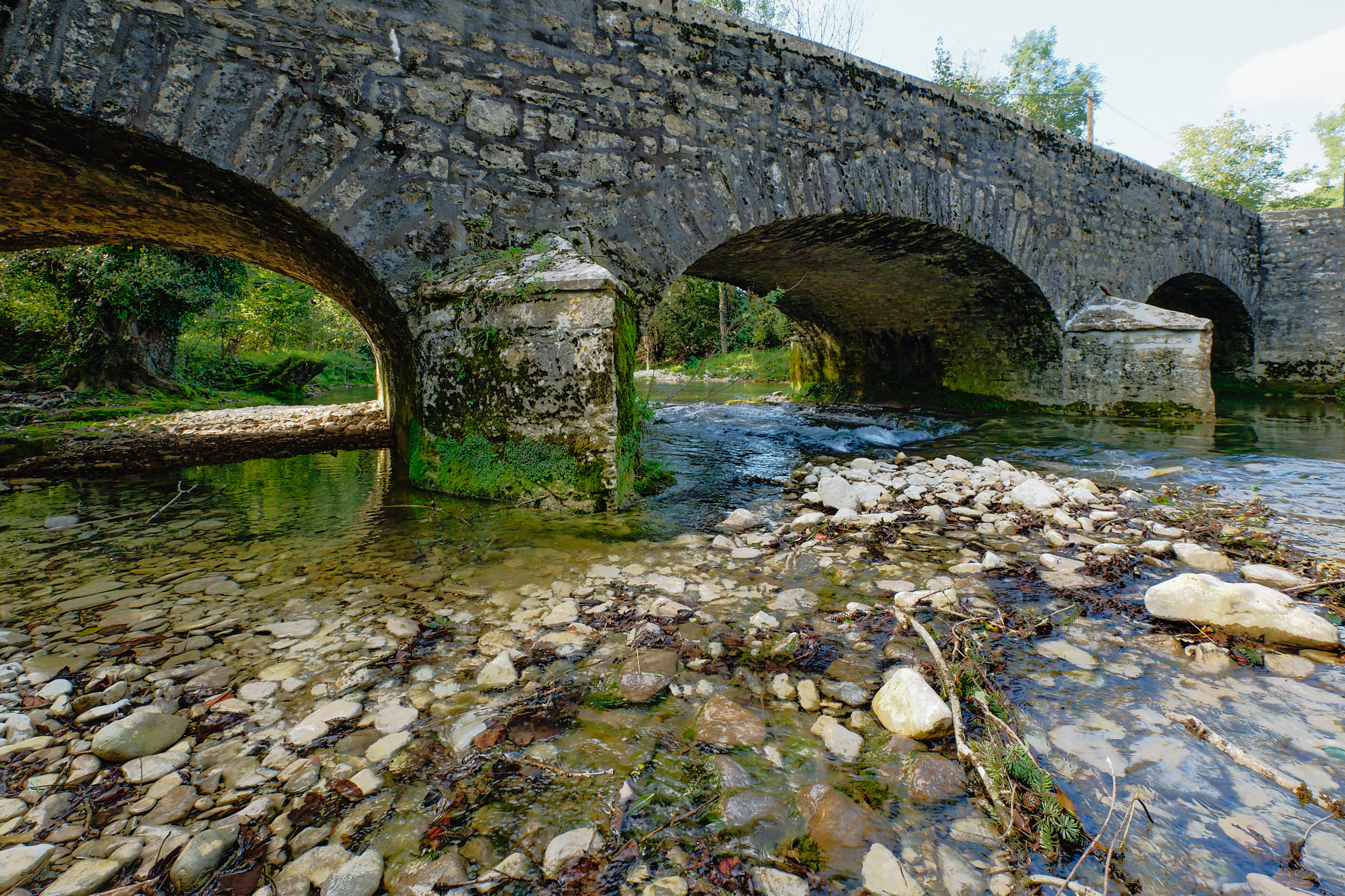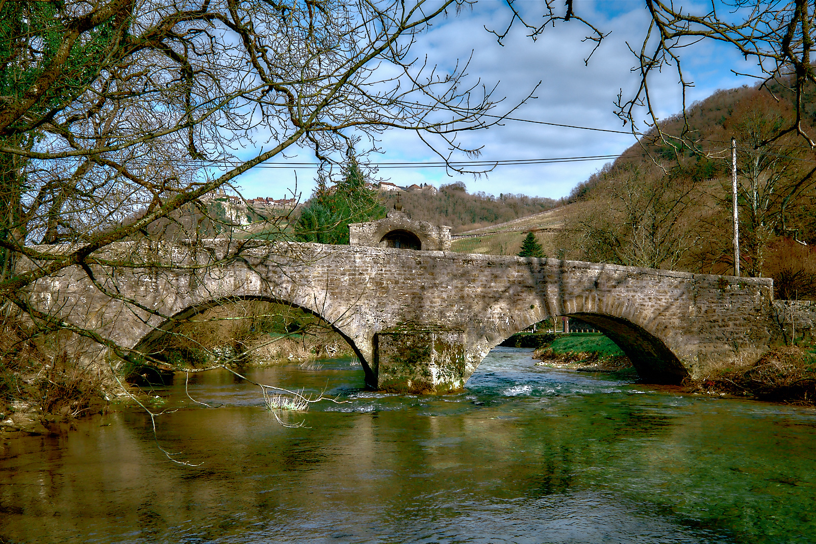 Datant du XVIIIe siècle il possède deux arches en plein cintre dont le tablier est incliné vers la rive droite. Il mesure 19 m de long et 3,7 m de large. La pile centrale est surmontée, côté aval, d'un petit oratoire dédié à la vierge avec un calvaire.