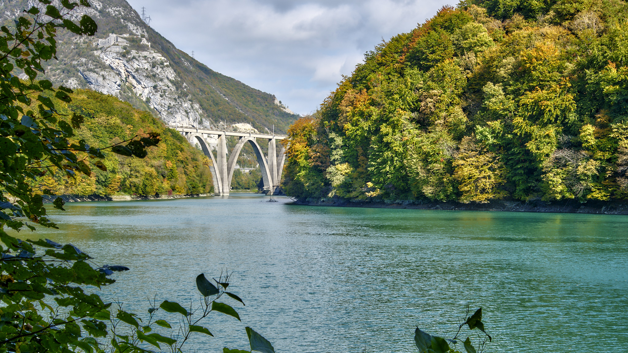 un ensemble de 4 travées métalliques à tablier sur poutres en treillis, reposant sur trois piles en maçonnerie et